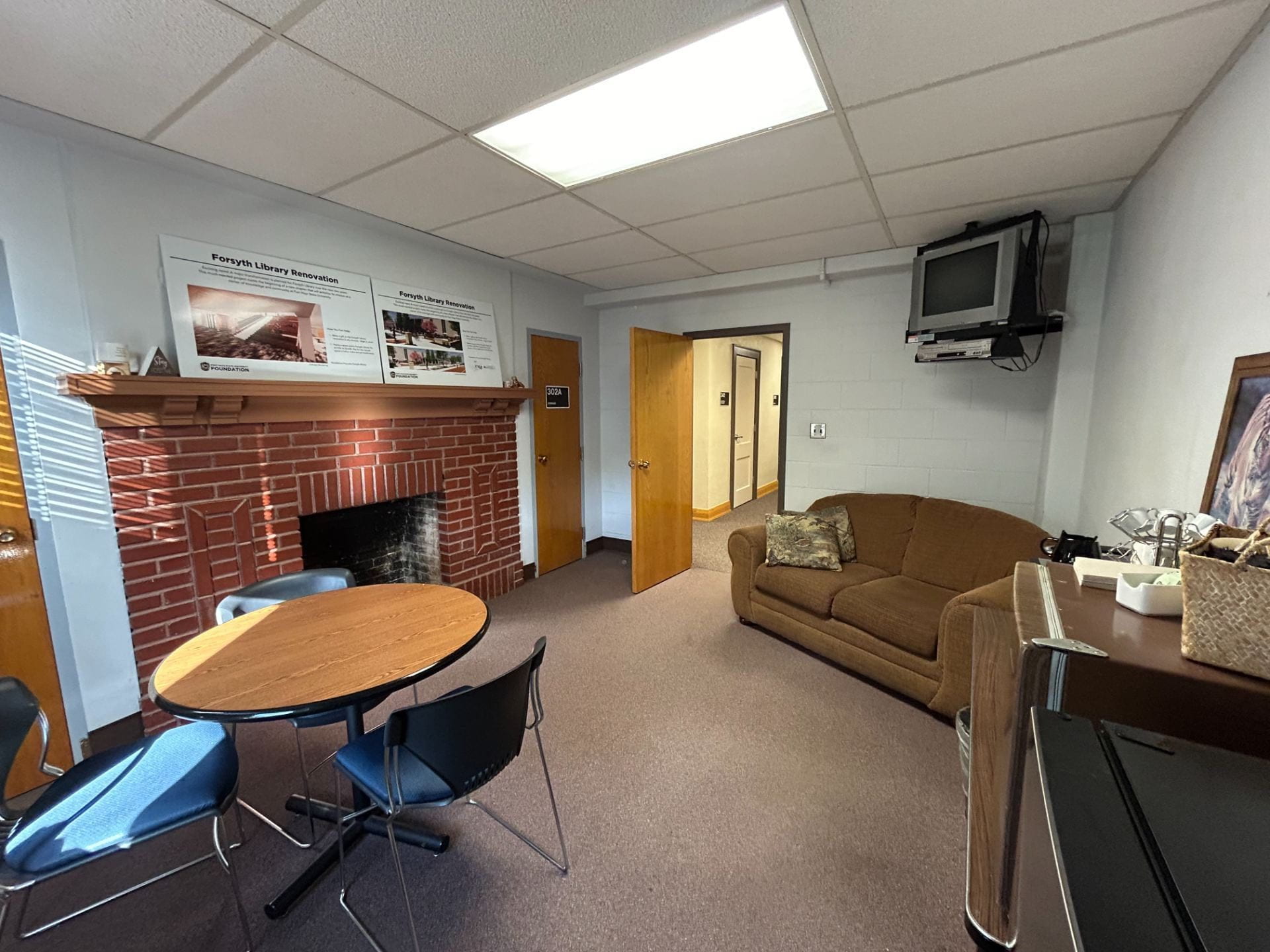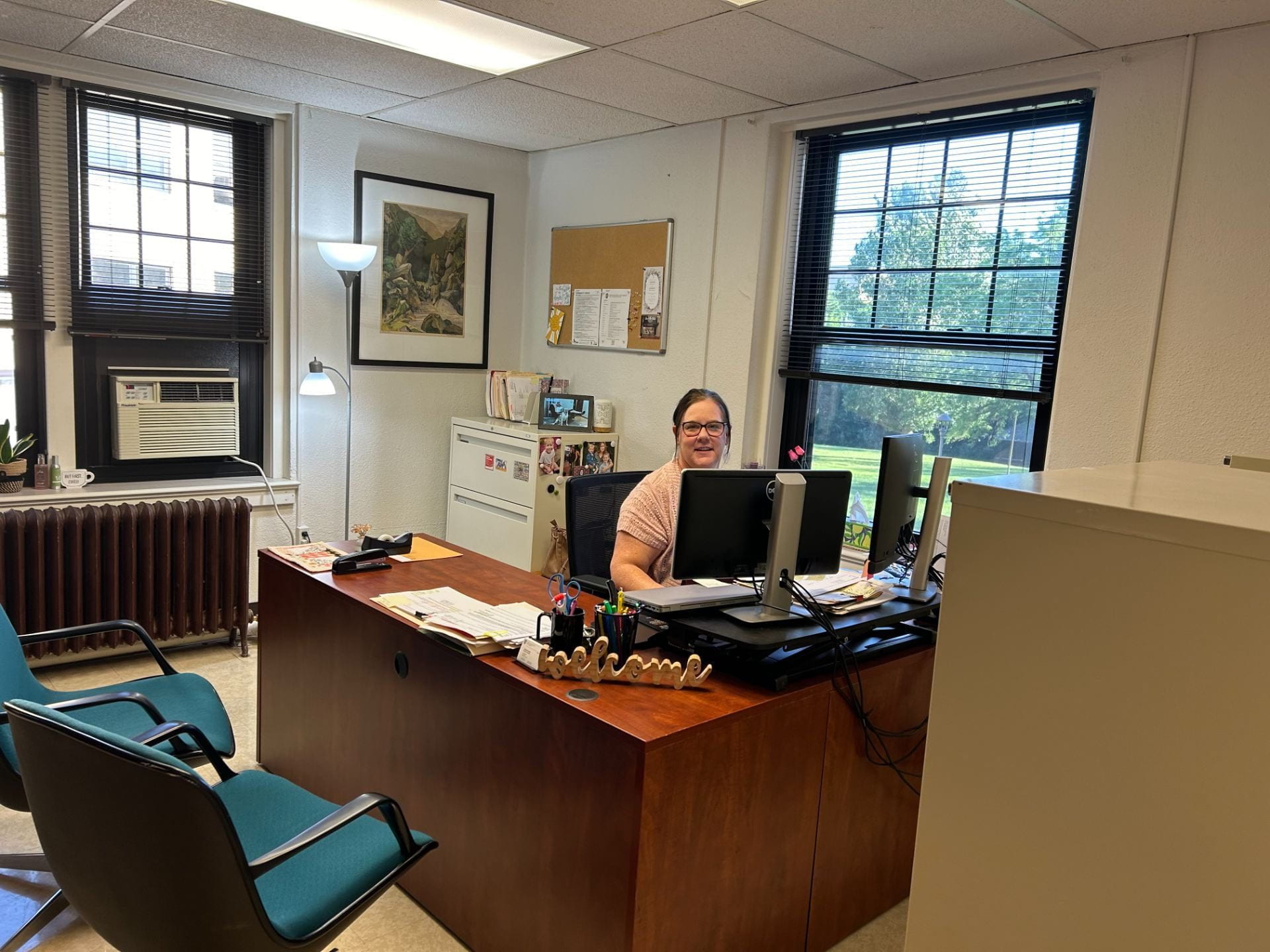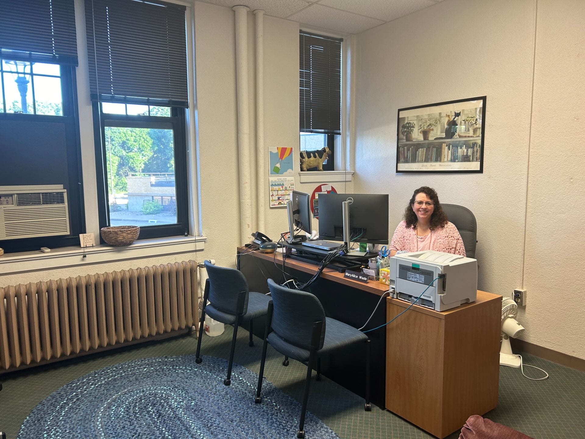 Many staff enjoy the new walking path and crossing Jellison Bridge each day. Some of our staff have sewn custom curtains for their office, while others have hauled in rugs and other décor to feel more add some library flair and get settled. Being 100+ years old, the building has some character and charm: offices on the second floor have extra tall ceilings, some offices have green carpet, others have gray carpet, there’s even a fireplace in the temporary breakroom!