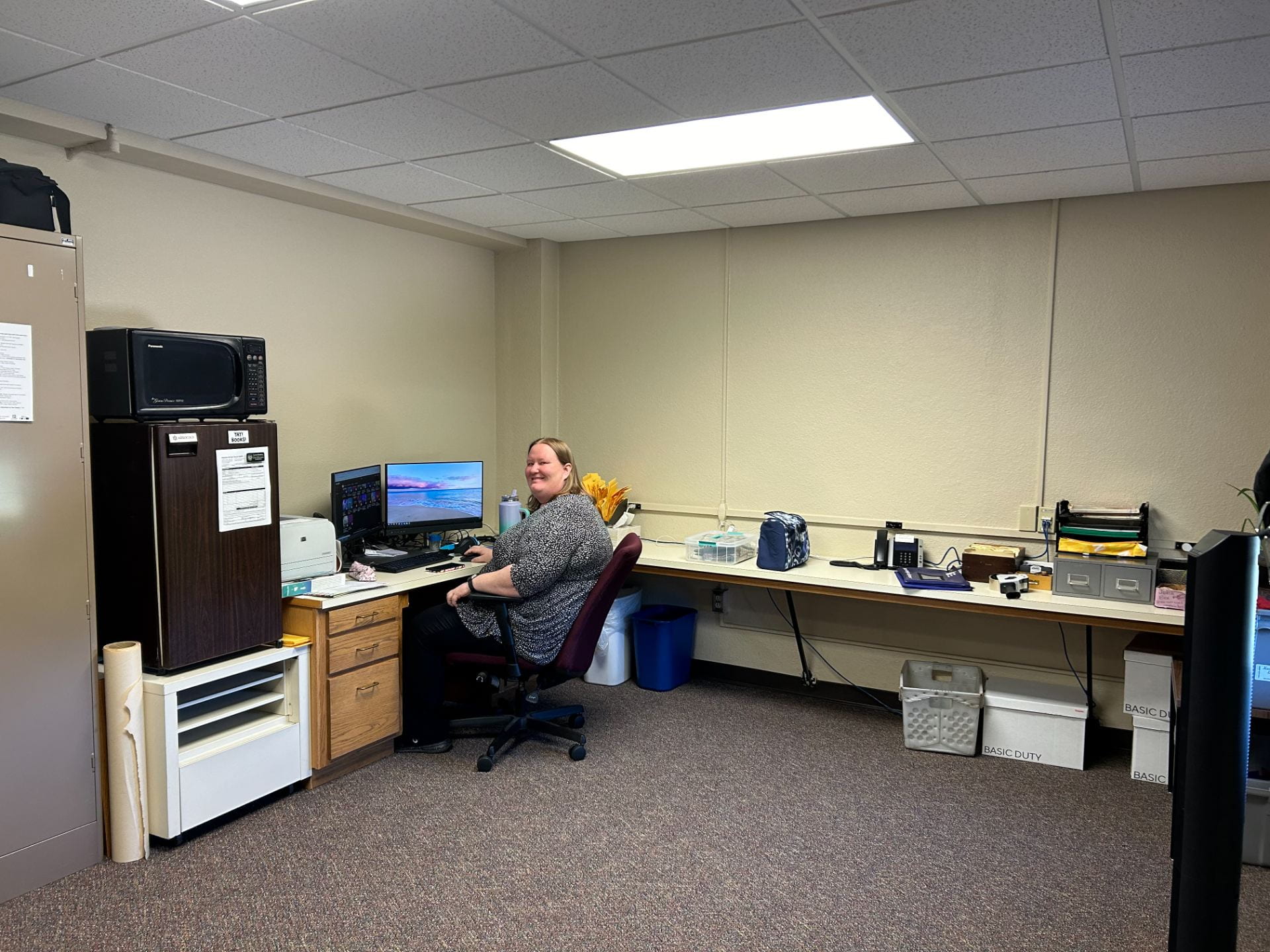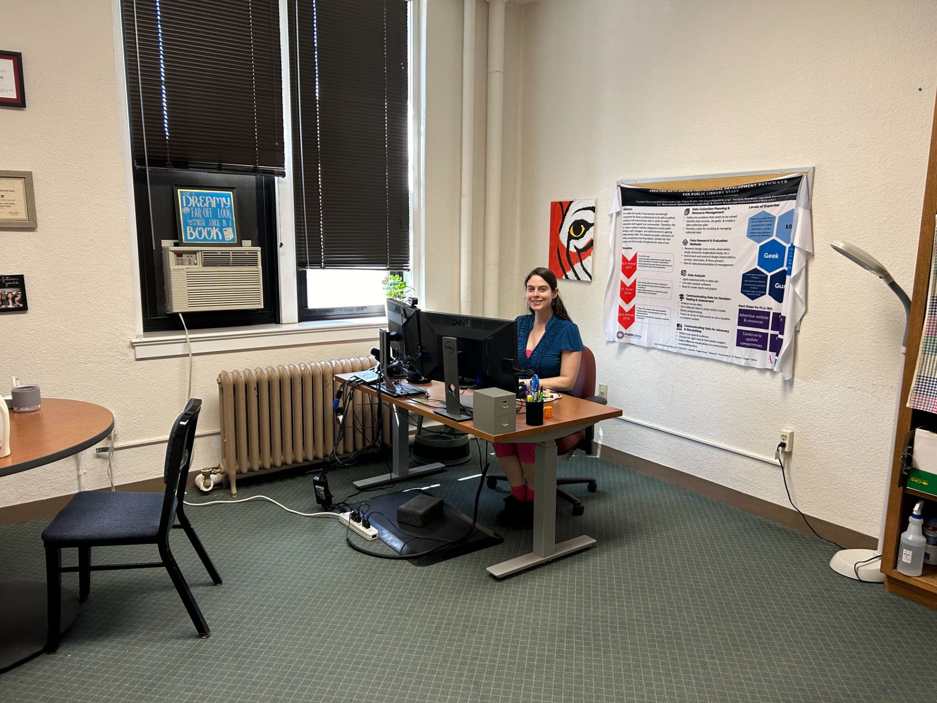 Another benefit of Custer Hall is the closer proximity of library staff offices. In the old Forsyth Library, staff offices were sprawled across the three levels within the 100,000+ square foot building, so you got your steps in by just walking to different meetings or to pop into someone’s office. Now our staff can walk down the hallway and interact with one another.